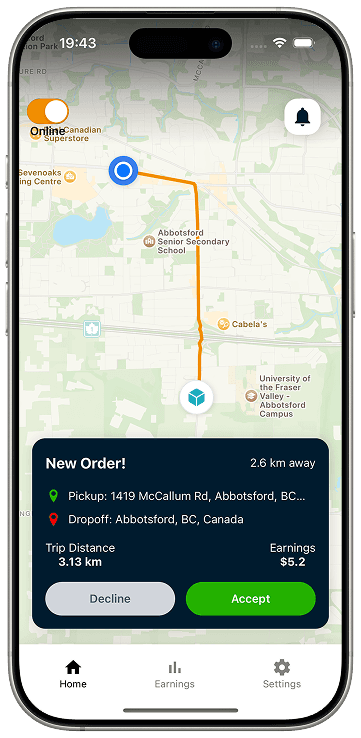 You’ll start receiving delivery requests in your area — and can begin earning right away.
